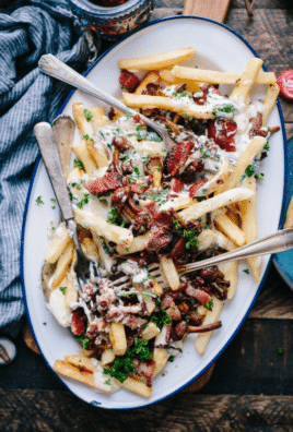 Spinach, Mushroom + Bacon Alfredo Poutine