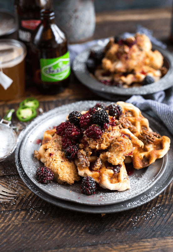 Chicken Waffles with Blueberry Syrup